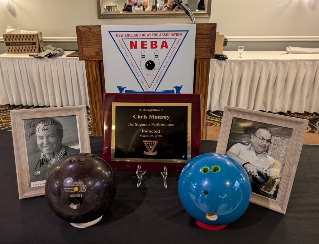 NEBA is based on points systems by winning titles and categories, Player of the Year, Senior of the Year (Aside from PBA and the USBC Halls of Fame, NEBA couldn’t be a harder one to get into for performance.). Let me put it to you this way, each regular Title is 6 points, they don’t award points for second or third place, only first place for Hall of Fame points. It’s very difficult…only 37 people in history of NEBA have won 6 Titles or more. I had to do it the hard way, with getting Titles for less points, and I had to win 8 Titles before I was Hall of Fame eligible. I won a 9th one last year in a Senior event. If I counted correctly, there are only 19 more people in the history of NEBA that have won more than 9 Titles. That’s why it’s so emotional to get into that one because that one is so hard to get into. It’s the “Who’s Who of the Best of New England”. To be in THAT company, yeah, that’s pretty special.