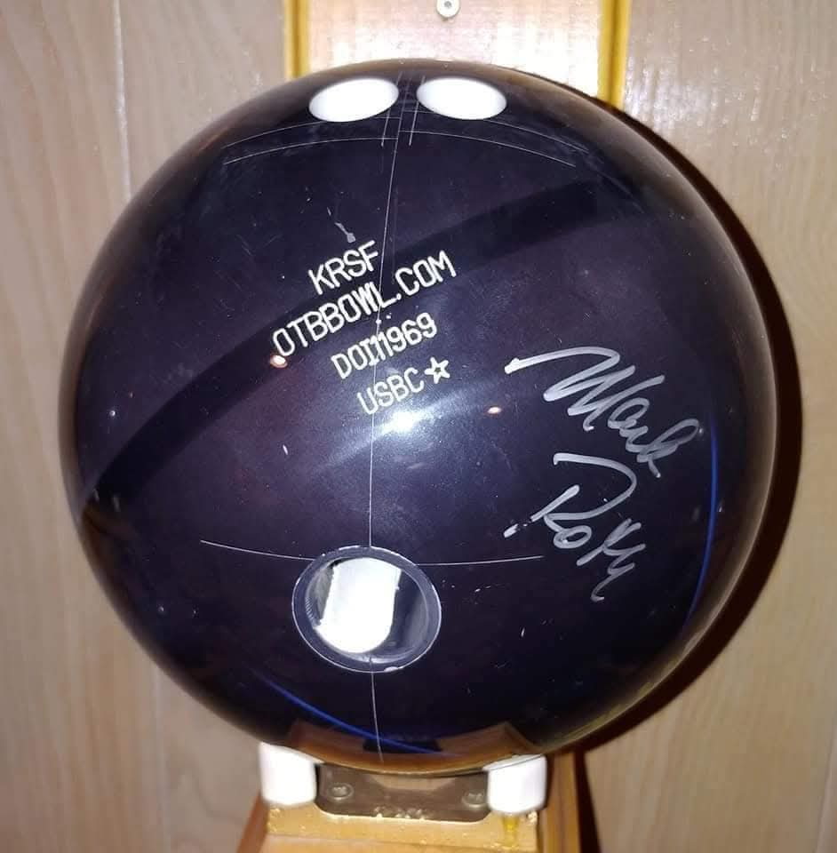 In 2011, Mark and his wife invited us to be guests at the PBA plastic ball event in his honor Cheektowaga, NY. I remember I was coming back from injury and I wanted to practice. We got a lane, and he didn’t want to practice, then changed his mind and decided to practice. I went to the car and got his bowling balls. Then, I was absolutely stunned at progress he made. I threw 3 or 4 shots, and he was bowling 45 minutes and the bowling center stopped and was watching him. We were at dinner, and I remember asking Mark “Why don’t you throw the first shot for the show? You can do it!” Sure enough, they talked, and they got Mark the last plastic ball in show. They drilled a ball for him, and went on the show, and the third try, he knocked 7 pins down, left 1-3-6. I had tears in my eyes because of how special [after all his progress since the stroke]. After the show, Mark wanted to drill more balls. I told him I would drill whatever he needed. Took the ball from the show, offered to make a mold and to pick which he liked the best. I remember I was on the phone with Mark and his wife saying I’ll get the ball back to you ASAP, but they said “No, you can keep ball as a souveneir.” I have it now in my trophy room in what I call the Coach’s Corner.