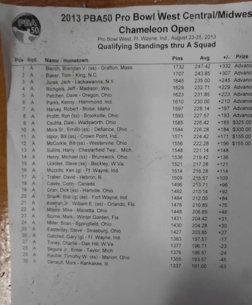 Photo: 2013 PBA50 Highest Qualifying Event, finishing 4th to Tom Baker for the Title.