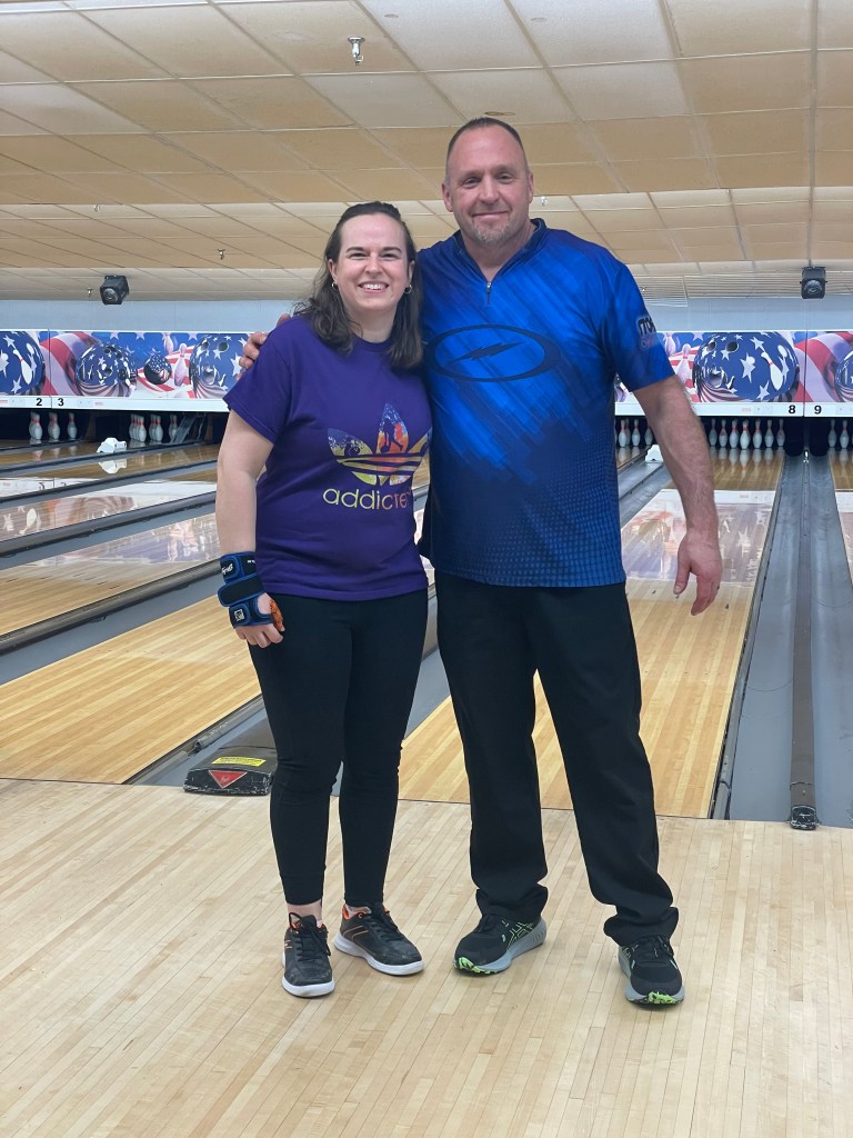It is my privilege to bowl with those who have been a part of leagues, alleys, and teams for decades. I only hope to inspire those who have been enjoying it for all their lives, and for those who are new and learning it. I enjoy meeting new people during tournaments and just started experiencing Nationals in 2023. Dave’s wife, Karen Umbrello, was my first doubles partner.
